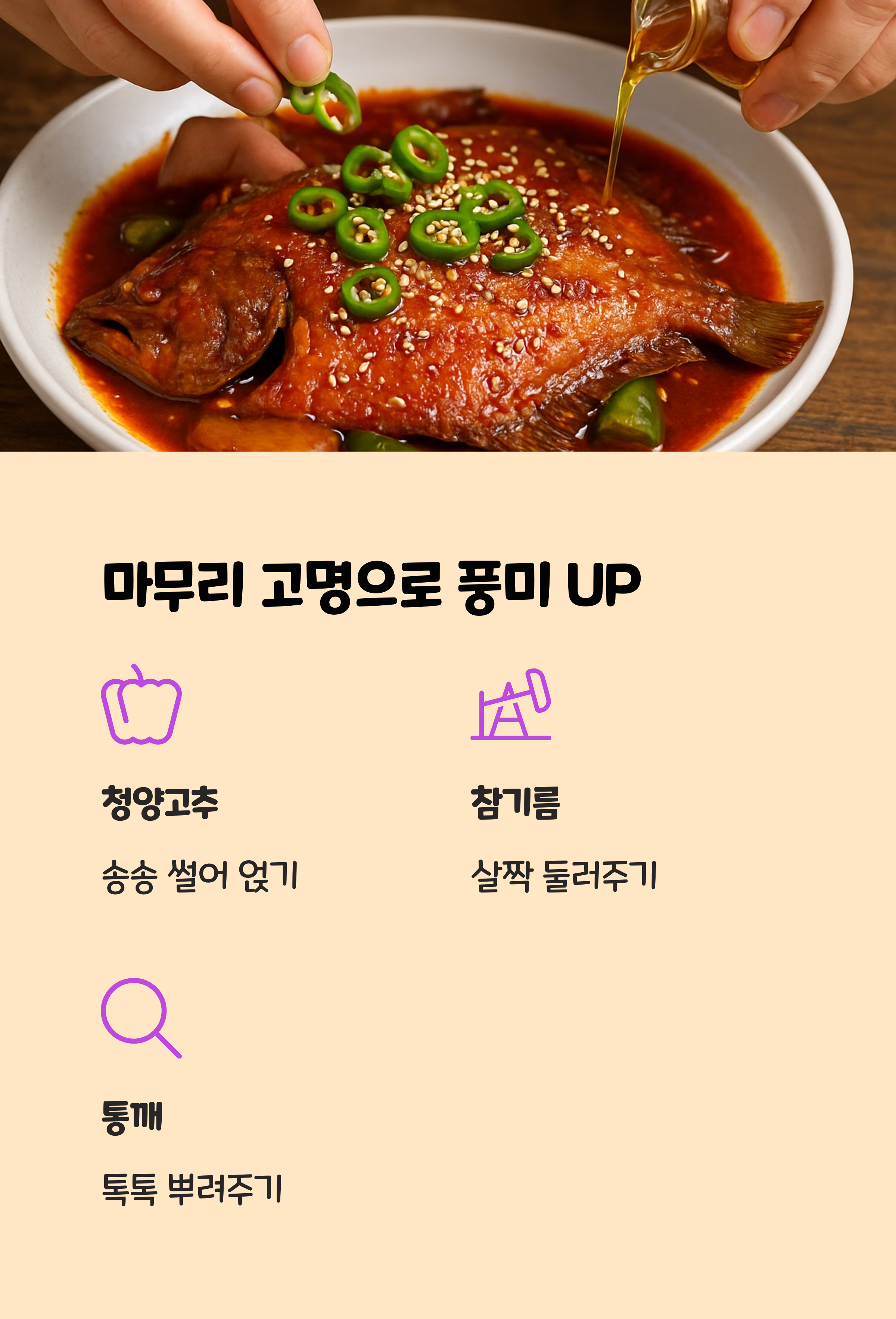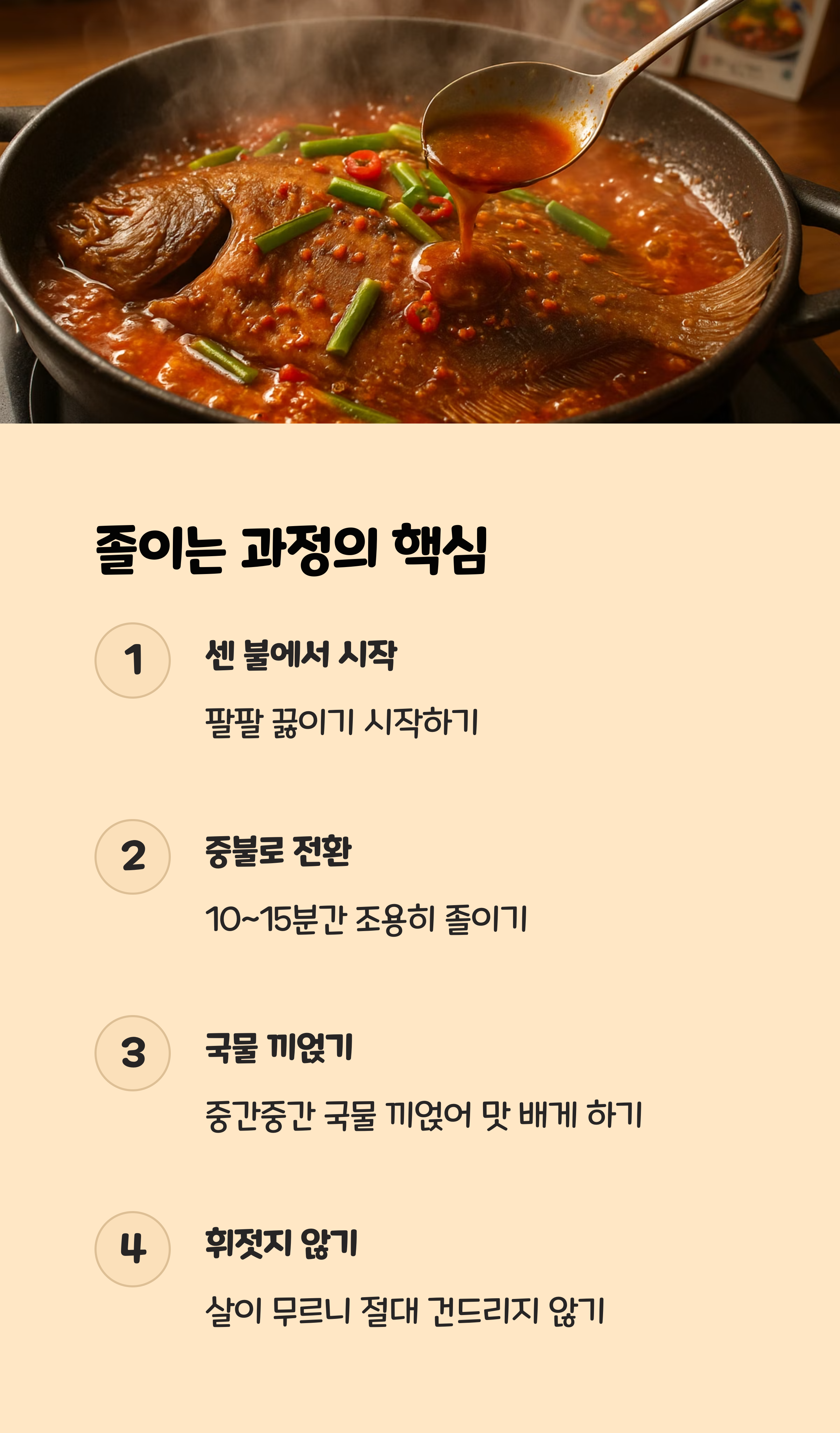 → 생선을 절대 뒤집지 말고, 국물만 끼얹는 게 포인트예요