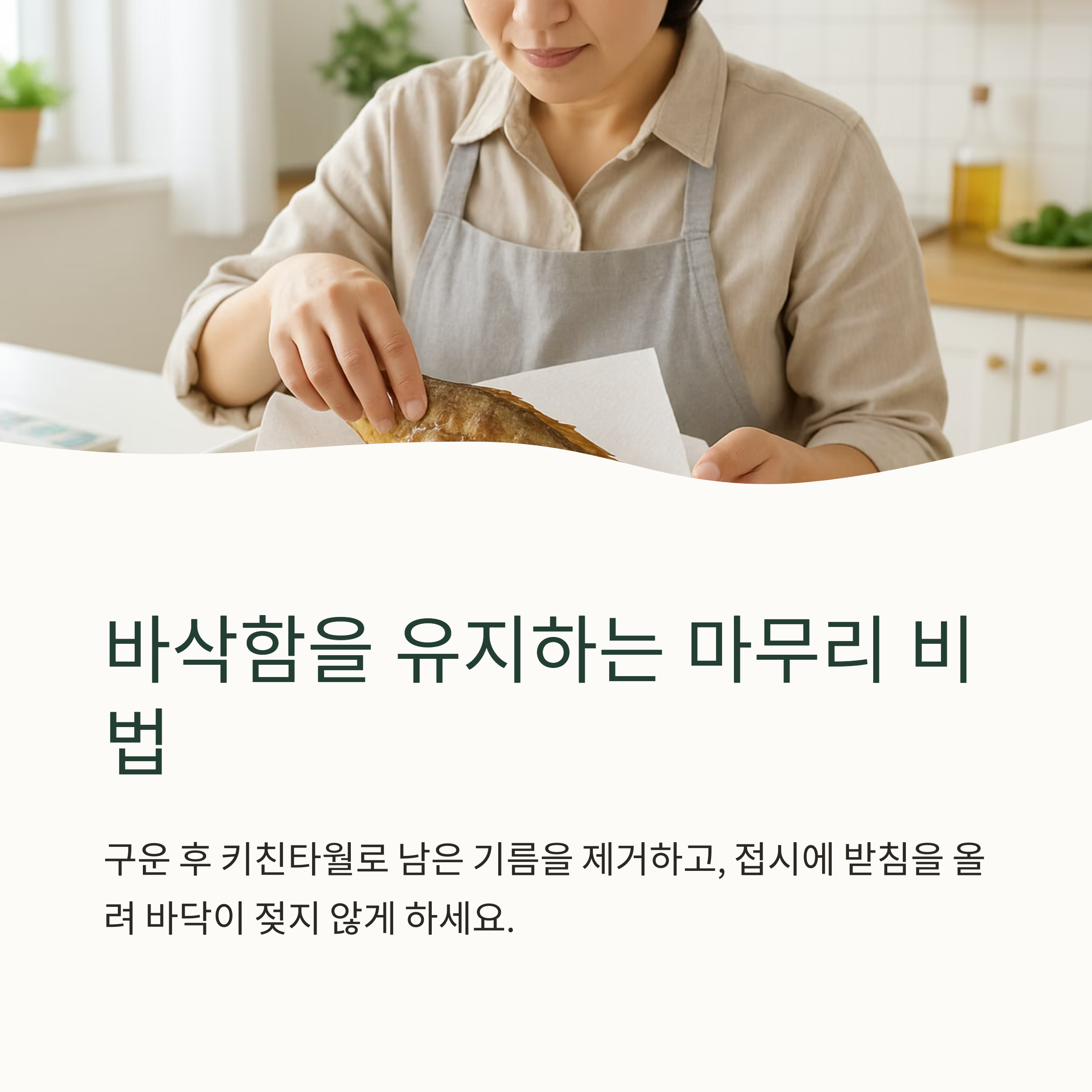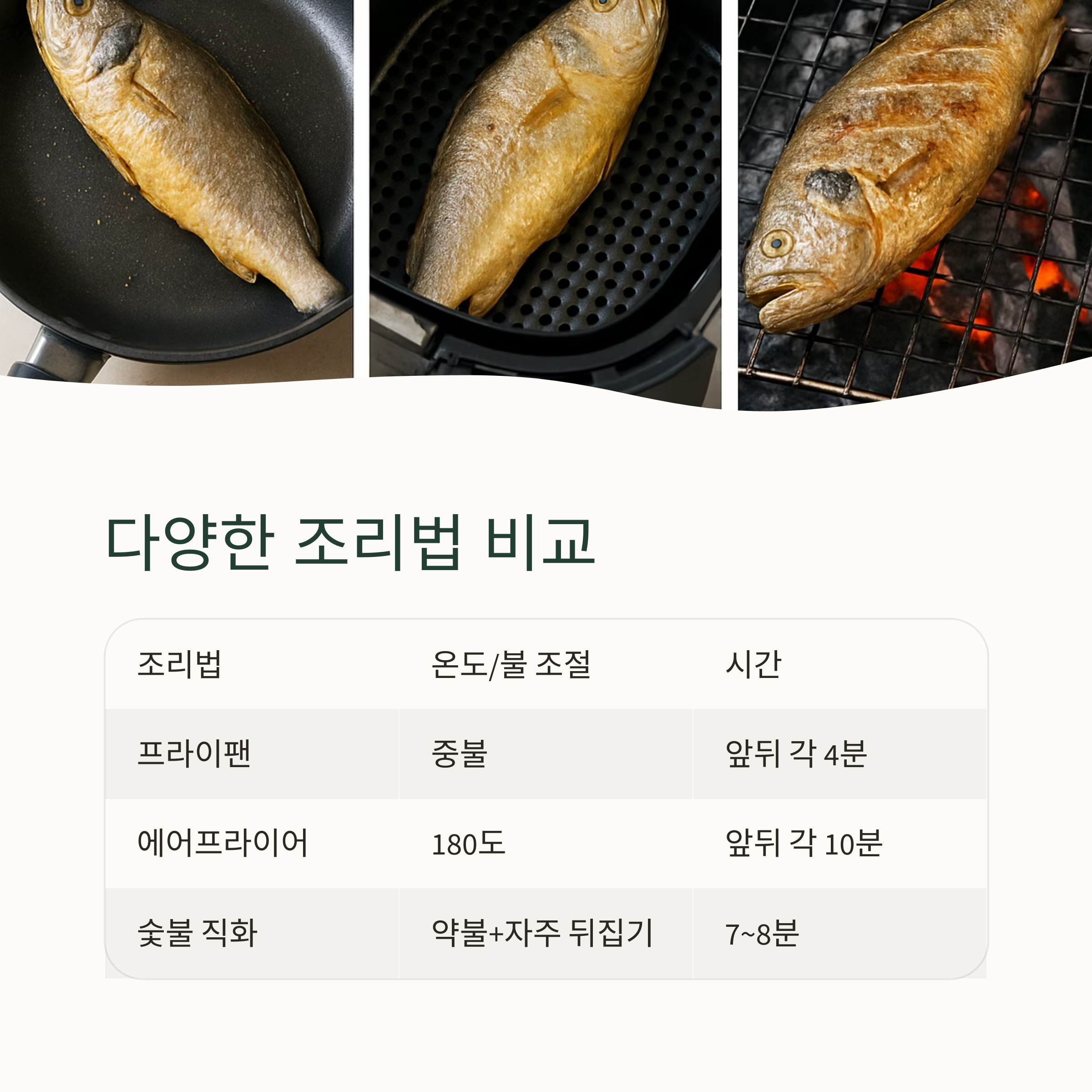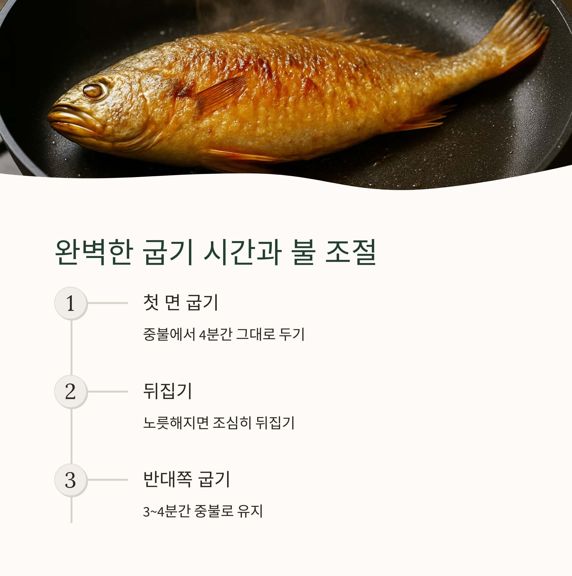 소금 간의 타이밍, 불 조절, 기름 사용까지 세심하게 조절하면 식당에서 먹는 바삭한 조기구이를 집에서도 만들 수 있습니다.
